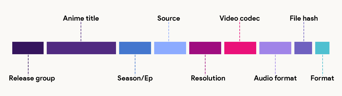 The individual or team behind the release, also called Encoder in the case of encodes. Example: SubsPlease, Erai-raws, EMBER, Yameii, etc. Sometimes, the release group name is mentioned at the end.